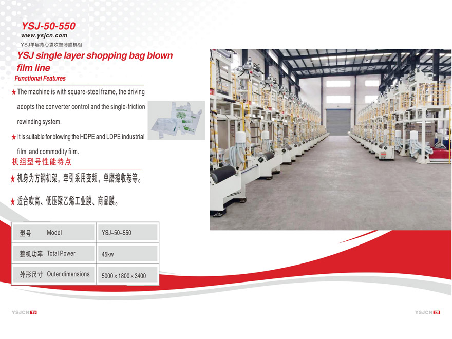 YSJ-50-550 YSJ single layer vest bag blown film unit